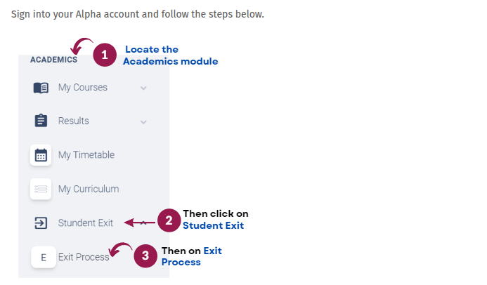 How do I exit from the university?