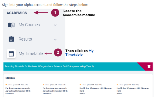 How do I view my timetable?